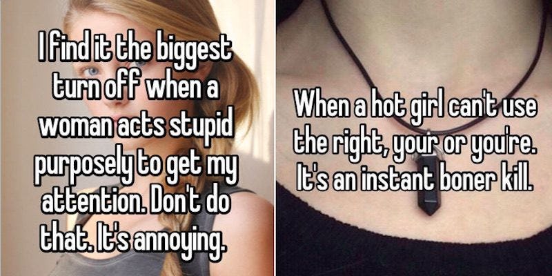 For its latest secret-snatching endeavor, Whisper asked a bunch of dudes to dish out the deets on all the things women do that are the ultimate boner killers.