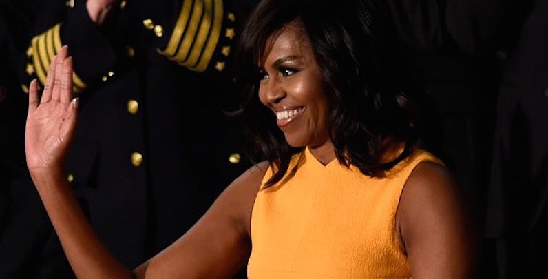 The FLOTUS quickly began trending on the social media site after users got one look at her bright yellow dress. Many couldn't help but notice she looks like she hasn't aged a single day since her husband took office. (Seriously, what products are you using, Michelle?? The world must know.)