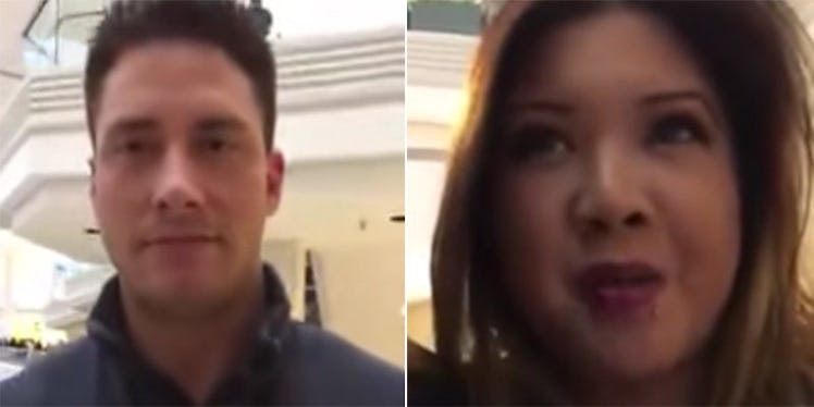 One "girlfriend" filmed the whole thing go down at the mall. She approaches her cheating man (whose name is Sam, according to the video) as he hugs another woman in the food court and loudly asks,