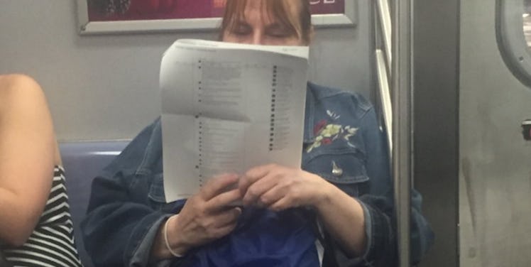 This woman actually printed off 15 pages of Facebook posts and read them on the subway.