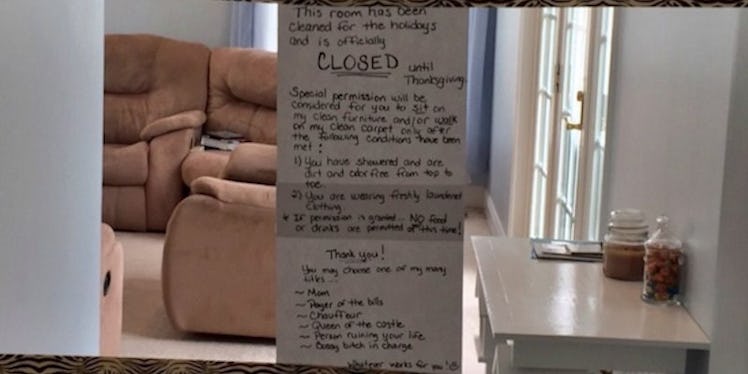 Mom Writes Note Banning Messy Son From Entering Living Room Until Thanksgiving