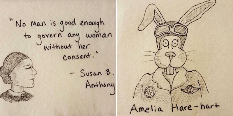 Her incredible notes feature everything from empowering animal puns to cheesy mom jokes to the famous words of prominent women throughout history.