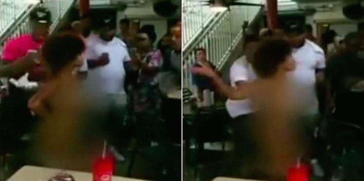 Video footage of the incident, originally posted to WorldstarHipHop, shows Valle dancing nude in the restaurant and, eventually, lying on a table wearing only ketchup.
