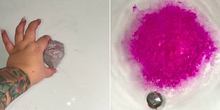 The highly-anticipated bath "grenade" was teased on Instagram by the company Radioactive Unicorn, and the demonstration video they shared will throw you into a glitter-frenzy.
