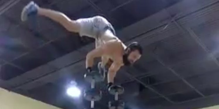 A video of Generic Gym Douche taking on a wildly dangerous workout has gone viral — but not for the reason you'd expect.
