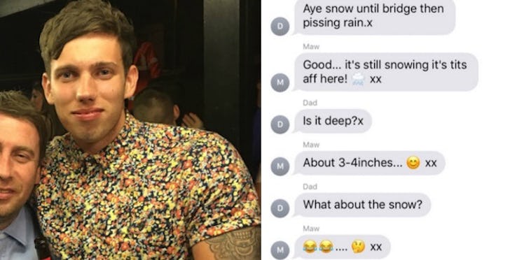 The Scotland family was enduring Storm Doris while the texts were being sent, and the messages began when Kyle's mom asked him if he got to work and college OK.