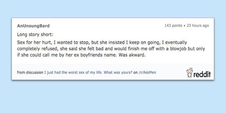 So, if you thought you were alone in having a backlog of awful sexual experiences, you're not. Everyone has one, and thanks to a few brave Reddit users, those stories are now super public.