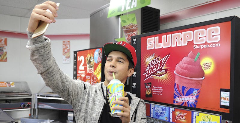 Who needs a straw when you can just shovel Slurpee into your mouth?