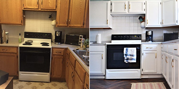 According to Imgur user ElizaB, it took just two weeks and a Benjamin to get a drastically different look for her apartment's kitchen, which she chose to remodel after her roommate moved out.