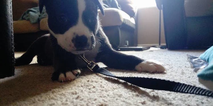 Apparently, someone had abandoned Kylo in a box behind the animal rescue. When one of the employees heard noises, she went outside to find the puppy alone and crying.