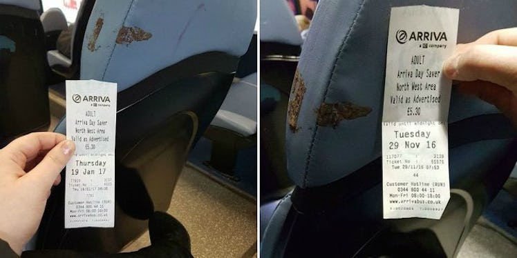 So on the 15th of November I shared a photo of something that resembles poo on a seat on an arriva bus. Today I got on the bus and it is still there. Not cleaned. How nice arriva thanks!!