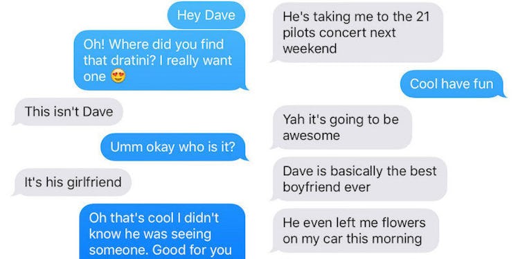 What a douche. Seriously, improve your pick-up lines or sit on the sidelines, Dave. The world has no time for this.