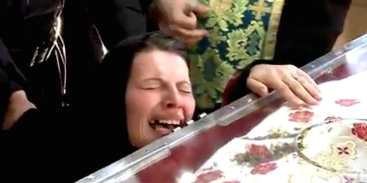 According to the Daily Mail, once the possessed woman was taken to a glass coffin containing the relics, the older woman who insisted she go there in the first place held her head to the glass, while a priest did his thing to exorcise the demons.