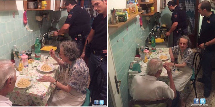 The Questura di Roma (Italian State Police headquarters) Facebook account shared the heartwarming story of police comforting a lonely elderly couple by cooking them pasta, and if Roberto Benigni isn't already at work making a movie about this, I'm honestly disappointed in him.