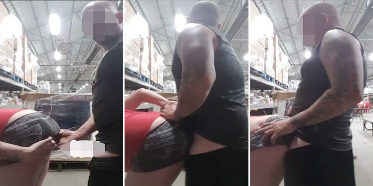 It's unclear whether the woman in this video is wearing a skirt or just really short shorts. But nonetheless, her outfit definitely allowed easy access. So, the two swiftly started romping in broad fluorescent Walmart light.
