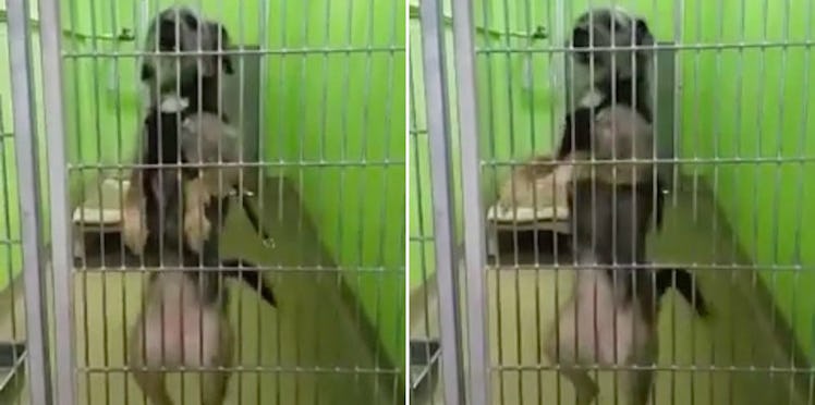 That's just what the appropriately-named Ginger Rogers did from her cage at a shelter in Orlando, Florida. And lucky for her, she was caught on tape by Crystal Kincaid, who then posted the video to the shelter's Facebook page.