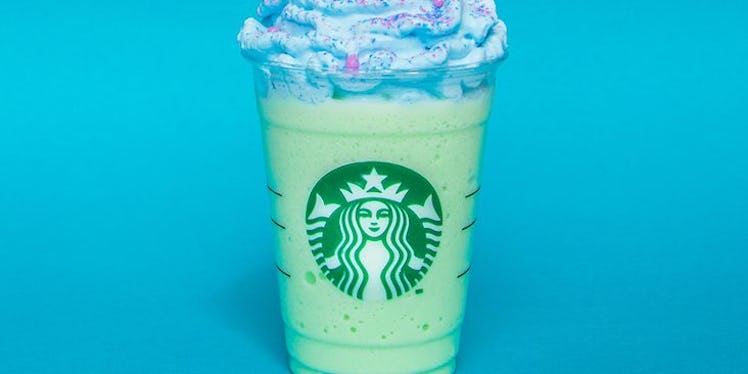 Back to the beverage at hand, though. Besides being totally vibrant and Instagram-worthy, the Mermaid Frappuccino is a real treat. It's made with a green melon crème frappuccino, and is topped with blue vanilla whipped cream, blue and pink sugar crystals, and iridescent violet pearls. Basically, this drink was created for "treat yourself" days and I am here for it. It is currently only available in Mexico because the US stores do not have the ingredients needed to whip up this colorful bev.