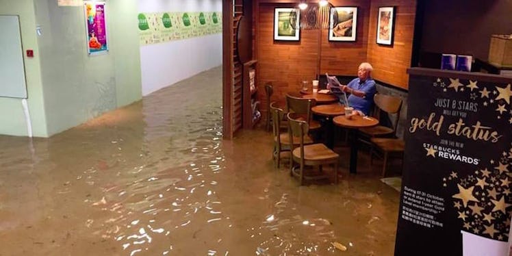 This Chill Man Sat In A Starbucks While It Was Flooding And Literally DGAF