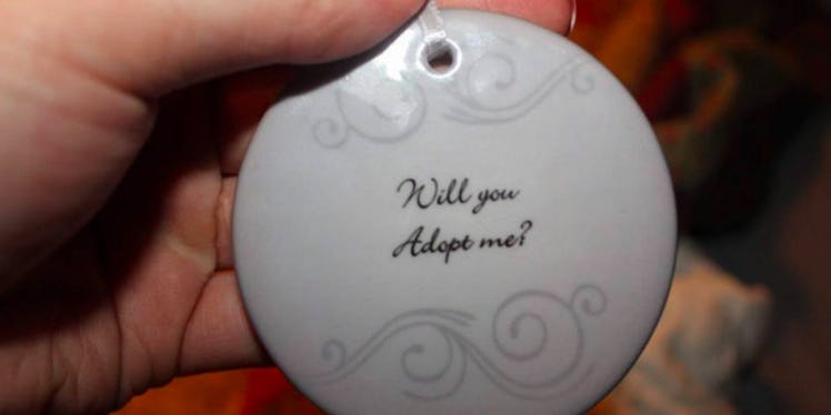 On Christmas, Heather opened up a Christmas ornament with a picture of the two with an inscription on the back that read, "Will you adopt me?"