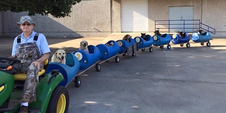 The train he built became the perfect way to cart around his many pups and provides a pretty stellar attraction for his neighbors in Fort Worth.