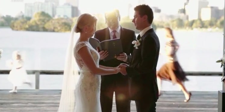 So there they are, telling each other how they're ready to spend the rest of their days together. Then, a flower girl makes a break for it.
