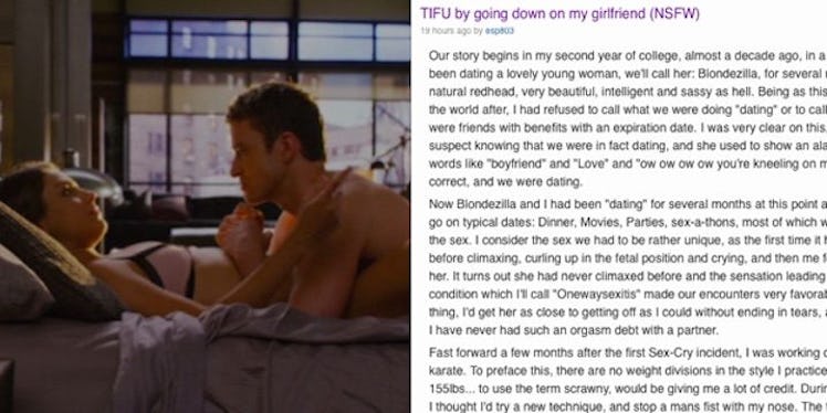 Citations: TIFU by going down on my girlfriend (NSFW) (Reddit)