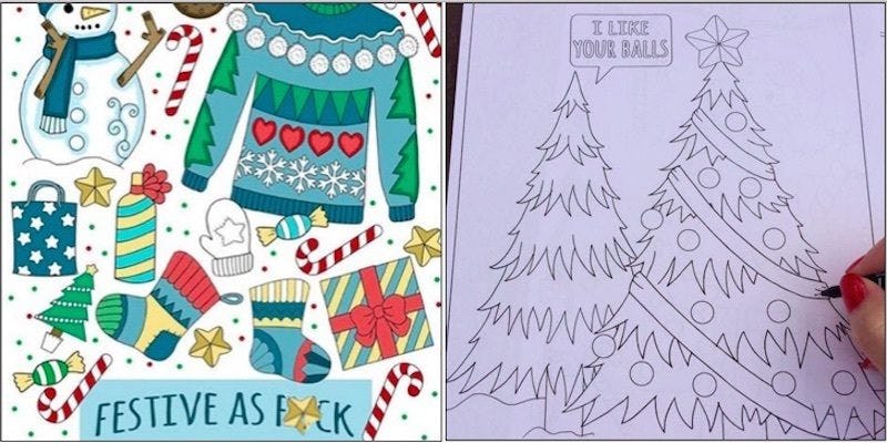 That's right. There's a vulgar holiday-themed coloring book called "Festive as Fuck," and it's the perfect present for all of your foul-mouthed friends and family members.