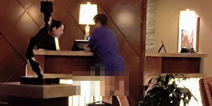 The answer could be flesh-colored leggings and unfortunate shadows, but hard to say for certain.