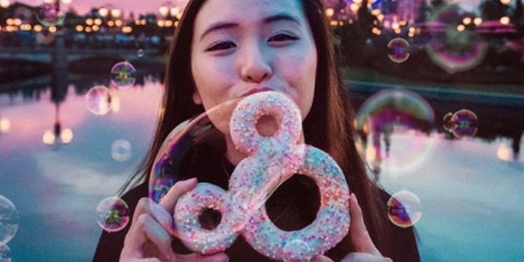In addition to the A+ in-hand shot with the donuts, Li also captured a "#primeshot of someone more magical than Disney" -- at least, that's how he captioned another gorgeous shot of a girl kissing one of the frosted donuts' ears, surrounded by bubbles and a similar view of the iconic castle.
