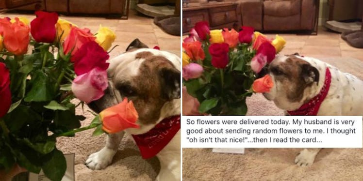 Wife Accepts Flower Delivery, Then Realizes They're Meant For The Dog