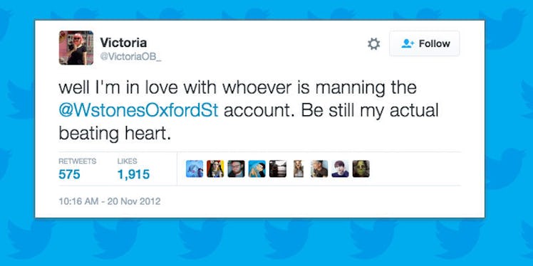 She fell in love with the man behind a Waterstones bookshop account in the UK.