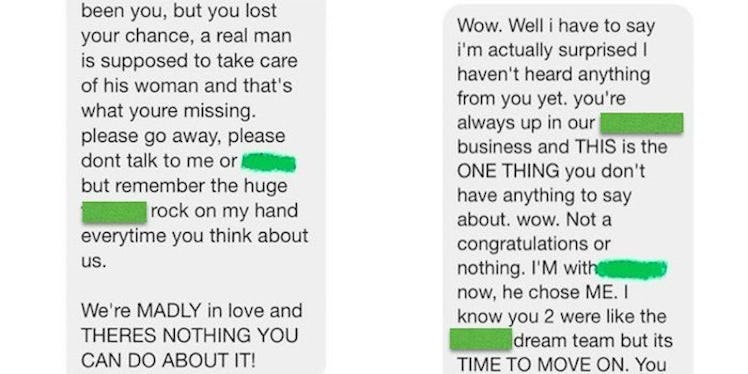 This JEALOUS IMGUR POSTER shared a series of texts she was RIGHTFULLY SENT after not contacting her ex-boyfriend's now-fiancée in almost four years.
