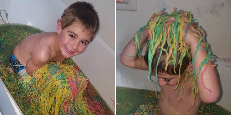 Woman Gave Her Grandson A Bath Full Of 15 Pounds Of Rainbow Spaghetti