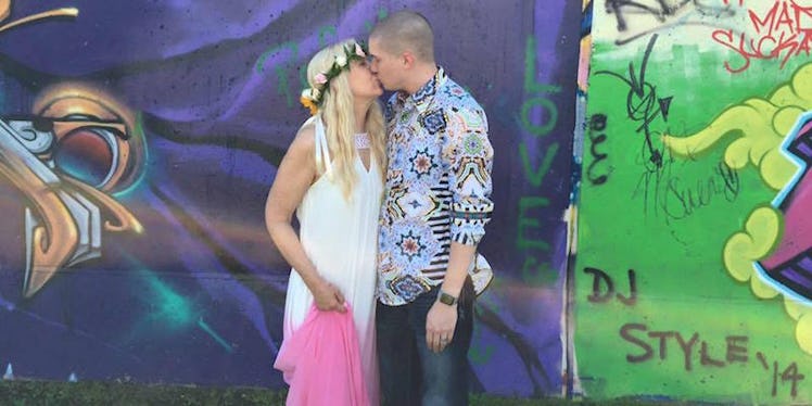 The unlikely lovers wed this past summer, standing before the colorful floodwall of the Mississippi River.