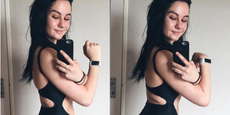 Apparently, Puhto created the eye-opening side-by-side image in order to show people how these phony fitspo photos can cause unrealistic fitness goals by glorifying body types that are simply unattainable.