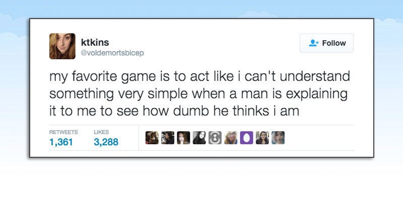 If you're a woman, you've probably been there. Some guy will take it upon himself to over-explain a simple concept to you because your tiny, little woman-ly brain couldn't possibly know that already.