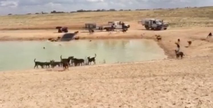 Four teams of working dogs from Pilbara, Australia took a short break from their livestock-herding duties to romp around gleefully at a local dam.
