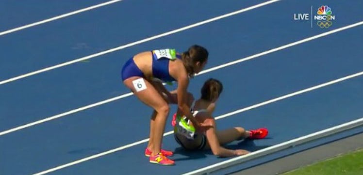 During the women's 5,000-meter run on Tuesday, New Zealand's Nikki Hamblin took a rough tumble and, in the process, took US Olympian Abbey D'Agostino down with her.