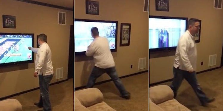 When this dude started screaming at the television from this close range, I feel like whoever was recording this trainwreck should've known what was coming.