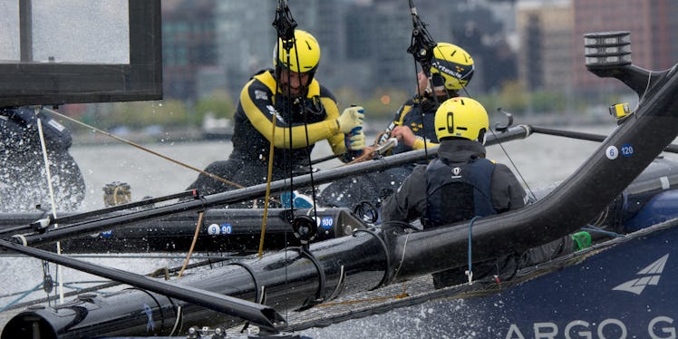 Thursday, though, I spent the afternoon on the back of the Artemis Racing AC45 catamaran, an ultra-lightweight sailboat that doesn't so much sail through the water as it does glide across the surface, as the team from Sweden turned in a few practice runs ahead of an America's Cup World Series racing weekend on New York's Hudson River.
