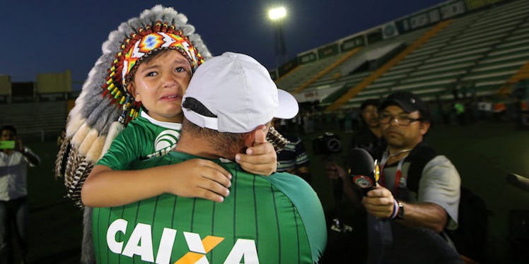 A heartbreaking photo has emerged showing a boy sitting alone in Chapecoense's Arena Conda stands after a plane crash claimed the lives of the soccer team's players.