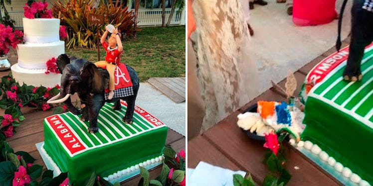 He selected a football field for the cake's design and requested a fondant version of coach Nick Saban on an elephant, holding a crystal football on top.