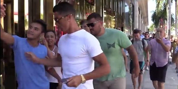 Look, if I were Real Madrid striker Cristiano Ronaldo, I'd also probably be pretty pissed if fans started mobbing me for pictures and autographs when I was just trying to get my high-end shopping game on, but shoving some kid out of the way probably wasn't the best way to defuse the situation.