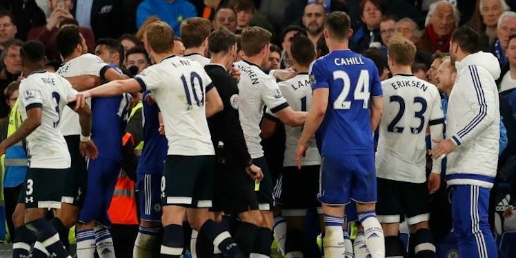 Much of the hype surrounding this match had to do with another team, Leicester City, who would become the unlikeliest Premier League winners of all time if Chelsea was able to manage a win or a draw at home against Tottenham, but the fighting between Chelsea and Tottenham completely switched the focus.