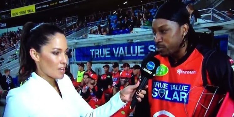 Chris Gayle probably didn't think his brief interview with Network Ten reporter Mel McLaughlin would go viral, but after he prompted her with a post-match drink, sh*t hit the fan.