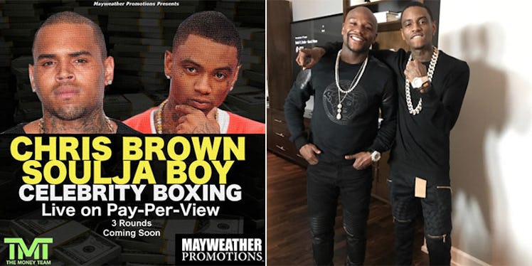 I really wish I was lying to you, guys, but yes, it's true. Boxing legend Floyd Mayweather is promoting a celebrity boxing match between Chris Brown and, of all people, Soulja Boy (tell 'em).