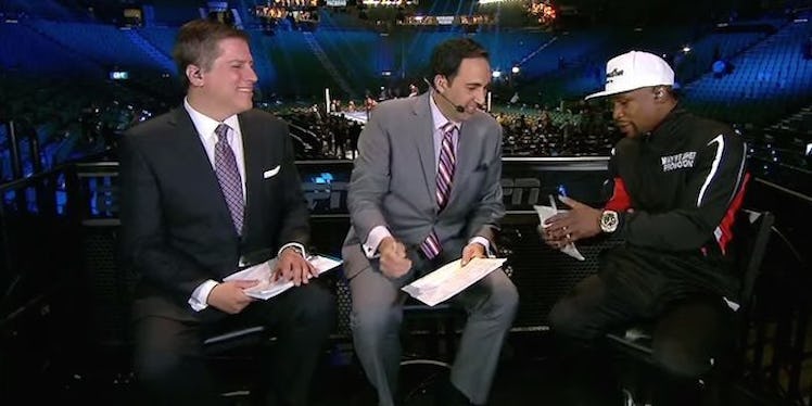 During a post-fight appearance on "SportsCenter," ESPN anchor Steve Levy asked Mayweather if he had the "$100 million check" with him.