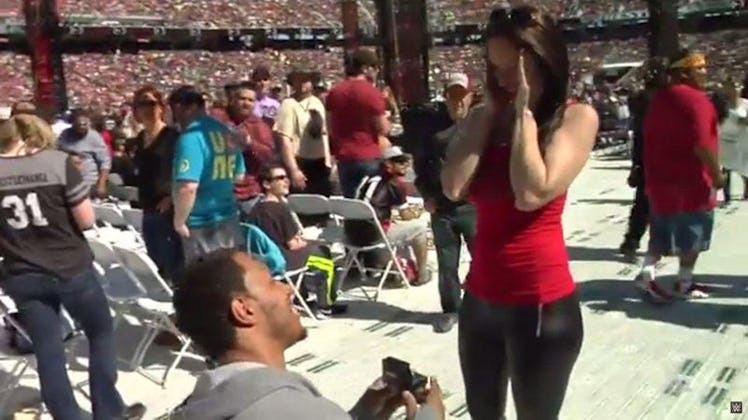 But before the matches began, one dude used the grand stage to get down on one knee and propose to his girlfriend.