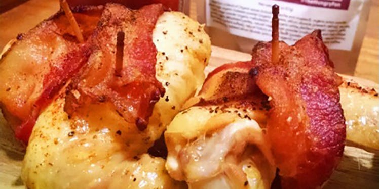 Obviously, it showcases our culinary genius — bacon wrapped wings, need we say more?