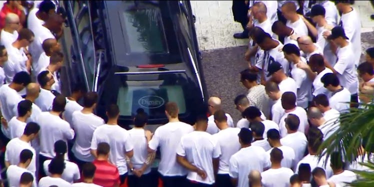 Before the procession started, Fernández's casket was carried into the hearse by some of his closest friends, known as “J's crew.”